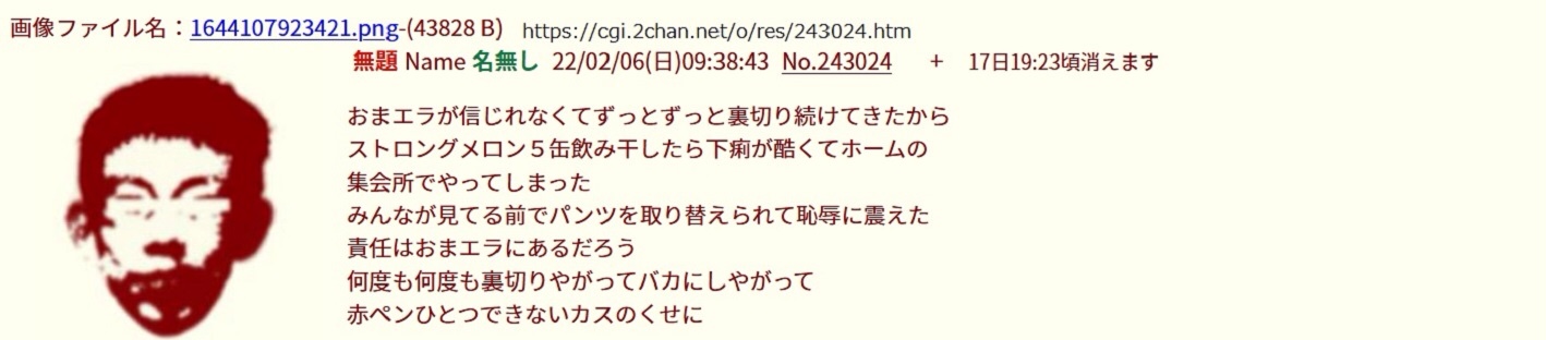 | … | 3無念Nameとしあき26/03/18(水)20:31:38No.1394751347+要介護状態っぽかったからパンパースはいてる的な妄想でもあるのだろうか? |