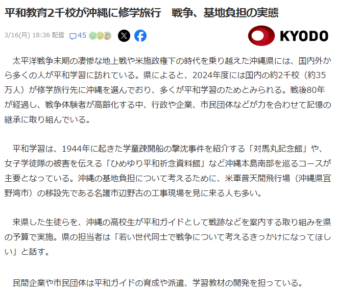 | … | 31無念Nameとしあき26/03/18(水)20:52:14No.1394756883そうだねx15修学旅行で反日左翼と交流することがありえないって |