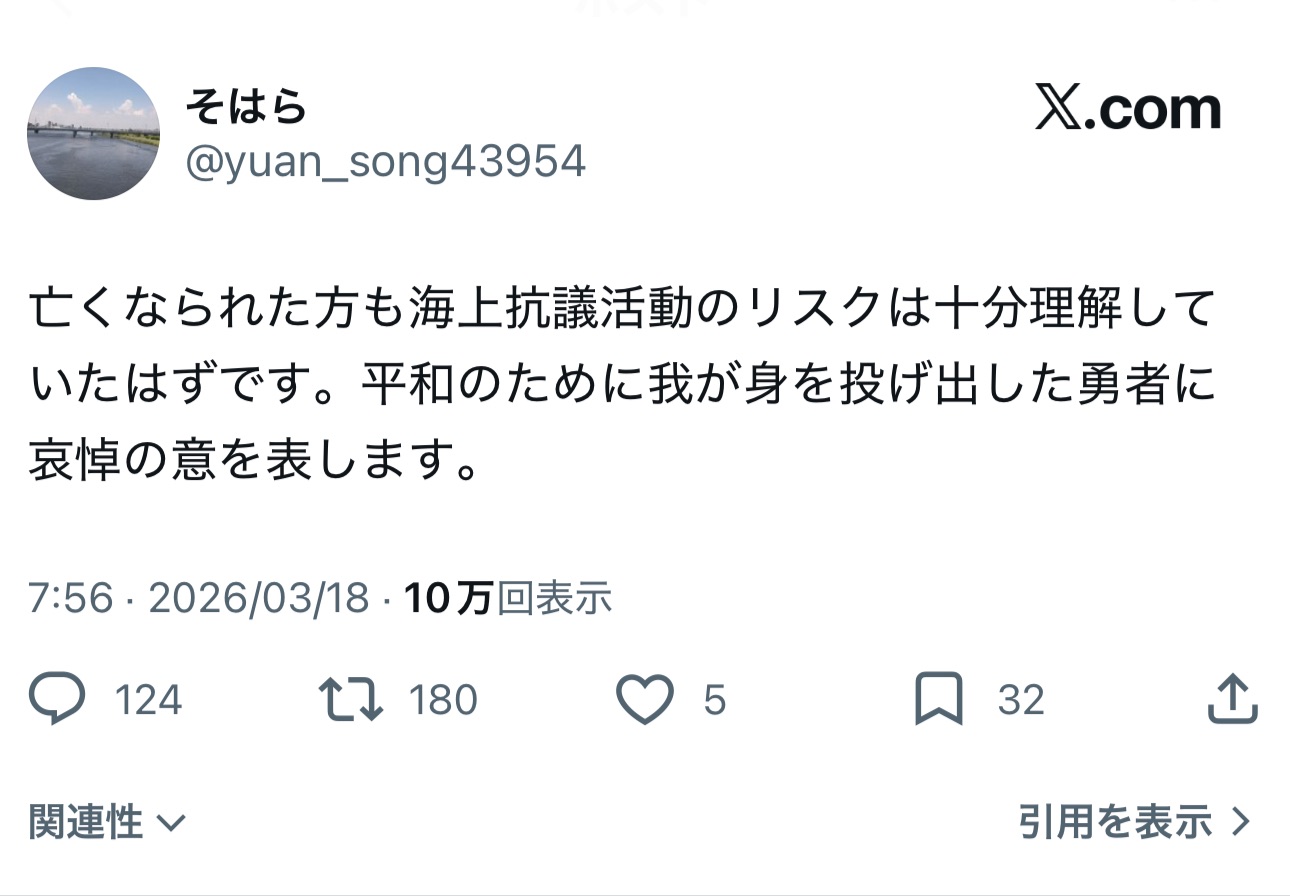 | … | 120無念Nameとしあき26/03/19(木)00:24:24No.1394808069+>>辺野古の犠牲者は勇者です |