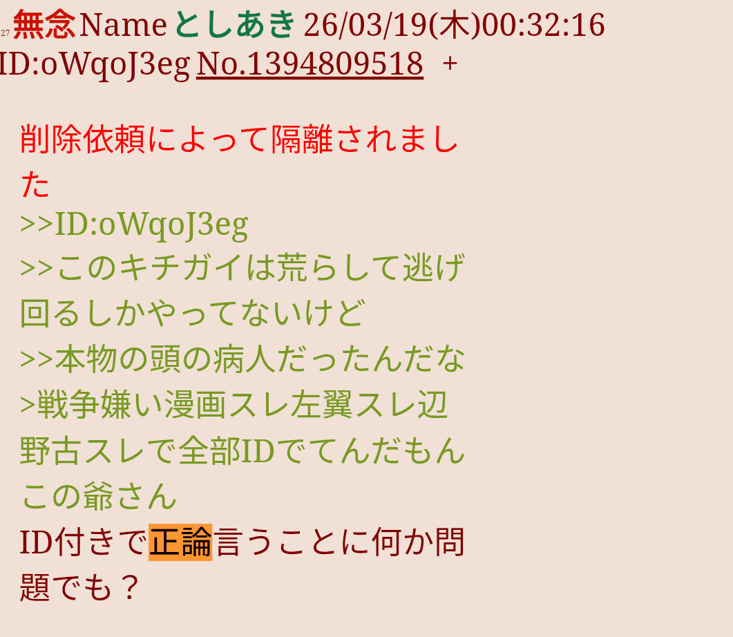 | … | 76無念Nameとしあき26/03/19(木)06:47:03No.1394831122+>本物のキチガイだったわ |