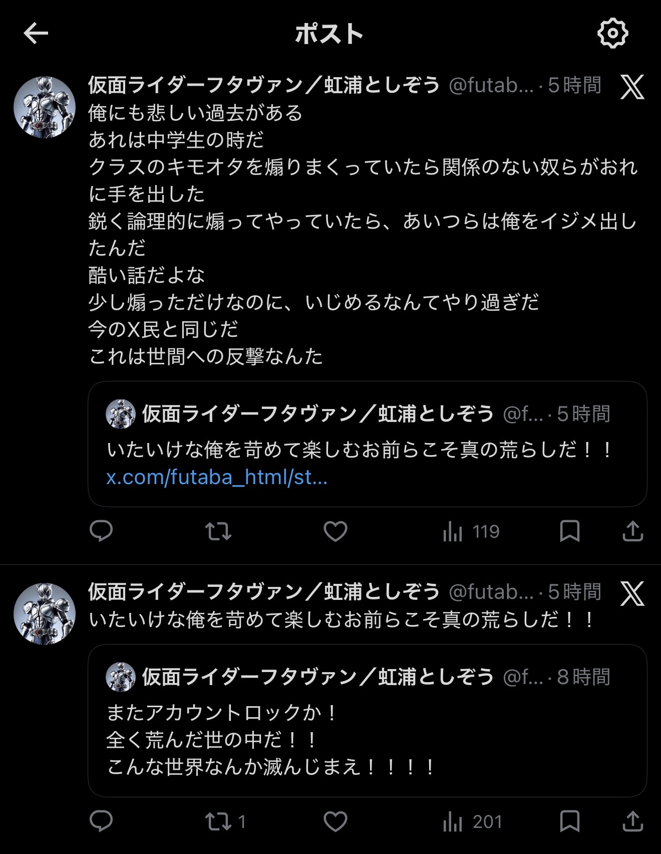 | … | 11無念Nameとしあき26/03/19(木)08:05:08No.1394837497そうだねx1そもそもウルトラ信者とギャバン信者なんか底辺のゴミだろ |