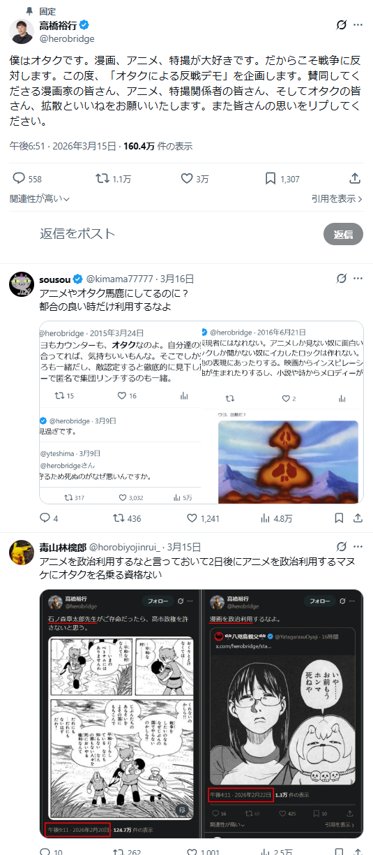 | … | 112無念Nameとしあき26/03/19(木)10:19:28No.1394851832+>最近共産党がオタクの味方アピールし始めたから何かやるだろうと思ってたけど反戦デモかい |