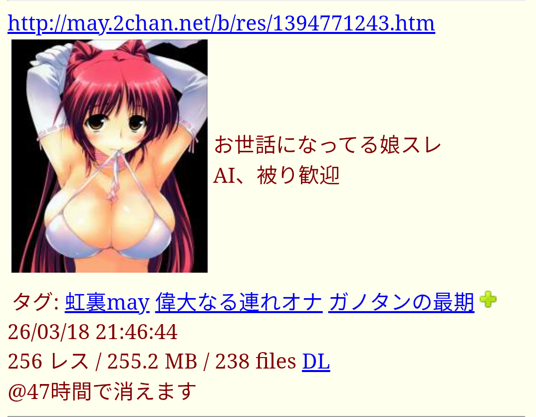 | … | 15無念Nameとしあき26/03/19(木)10:20:37 ID:fIE/v5jQNo.1394851996そうだねx2https://may.2chan.net/b/res/1394851722.htm |
