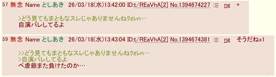 | … | 8無念Nameとしあき26/03/19(木)09:20:03 ID:ht7F5q0ANo.1394845351そうだねx5 1773879603371.png-(292847 B) 爺的にはこれなんか勝ったつもりっぽいけど |