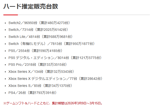 | … | 90無念Nameとしあき26/03/19(木)22:56:29 IP:126.29.*(bbtec.net)No.1395003225+>結局元々どのハードで売ってたゲームかで一番売れるハードが決まってるだけだったりして |
