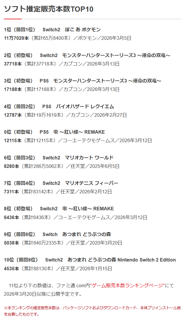 | … | 101無念Nameとしあき26/03/19(木)23:08:01 IP:106.73.*(enabler.ne.jp)No.1395006308+>エアライダーもぽこあポケモンも任天堂の実売アナウンスとファミ通の週販合わせて考えたら半分ぐらいDL版じゃねって感じだし… |