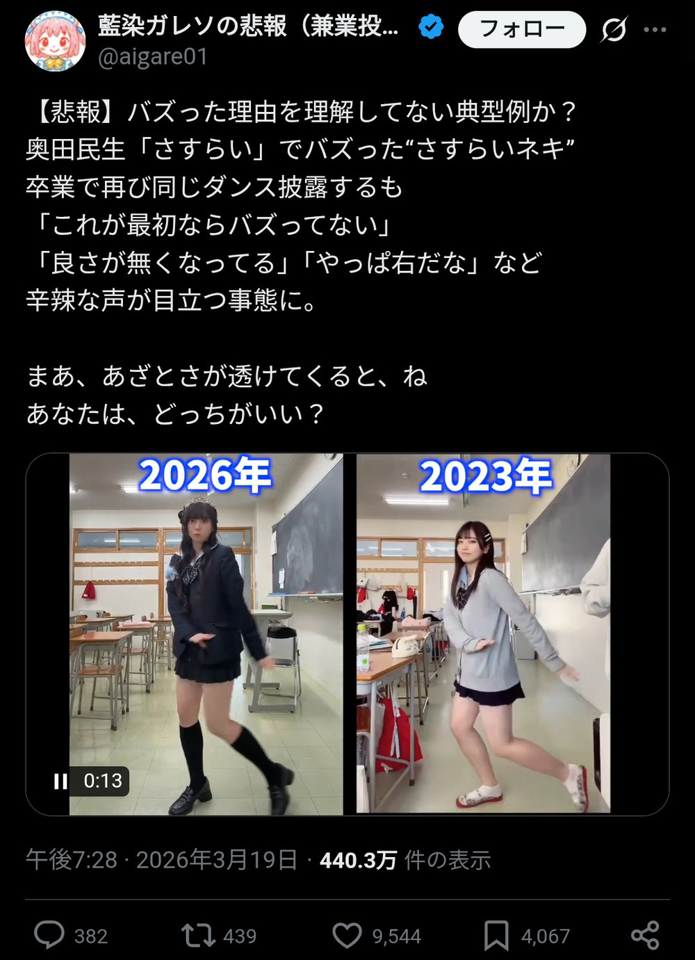 | … | 51無念Nameとしあき26/03/19(木)23:15:43No.1395008304+とりあえず最近の奴らは踊ってその動画をSNSに上げるのが楽しいらしいというのは分かった |