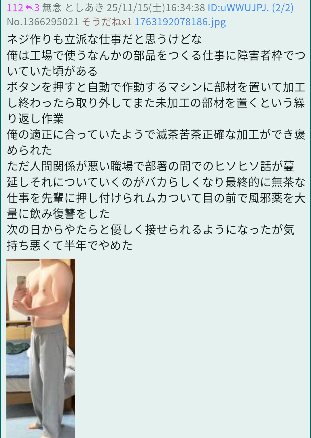 | … | 355無念Nameとしあき26/03/20(金)17:31:20No.1395152131そうだねx1>>俺の身体の方がメリハリあるな |