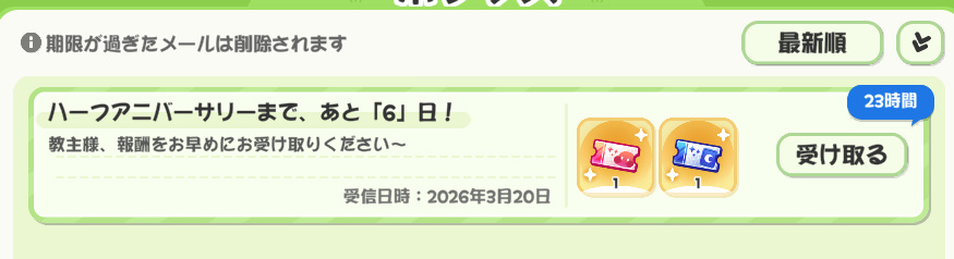 | … | 32無念Nameとしあき26/03/20(金)18:12:41 ID:i3m0wBH.No.1395160885+ 1773997961294.jpg-(76699 B) >#トリッカルハーフアニバ 7日間特別ログインイベント開催🎉 |