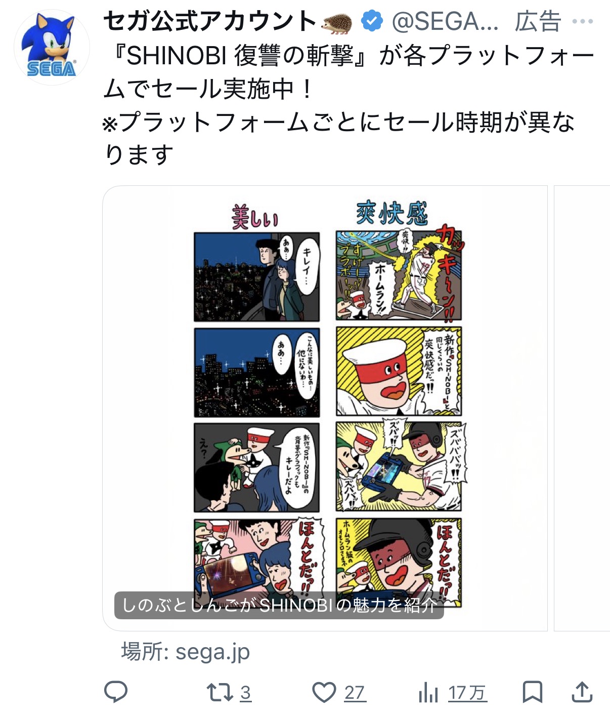 | … | 21無念Nameとしあき26/03/20(金)19:01:44No.1395172008そうだねx5 1774000904841.jpg-(326244 B) ツイッター見てたらセガの宣伝が流れてきた |
