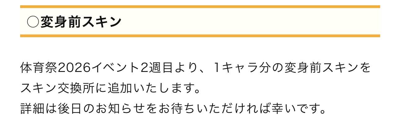 | … | 1無念Nameとしあき26/03/20(金)18:17:04No.1395161809+ 1773998224752.jpg-(45202 B) 体育祭イベント2週目に1キャラ分の新スキン追加 |