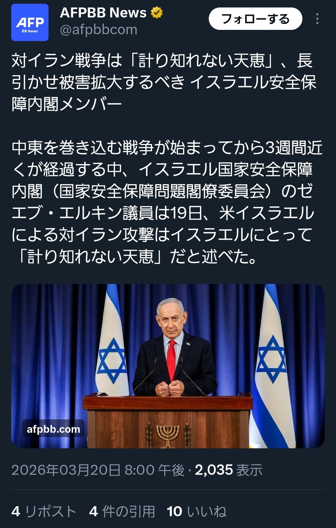 | … | 200無念Nameとしあき26/03/20(金)20:49:59No.1395201375+ネタニヤフは暗殺の報復を恐れて逃げ回ってるんだろ |