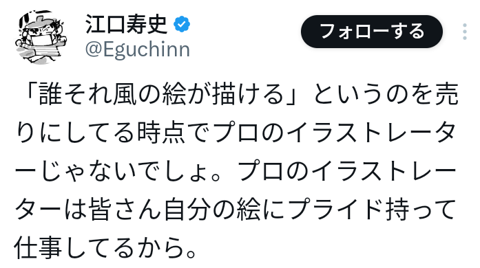 | … | 122無念Nameとしあき26/03/20(金)20:30:21No.1395195901そうだねx2すっかりスレ画が江口の代表作になっちまった…本人に無許可でパクり引用され更には街中に貼られ |