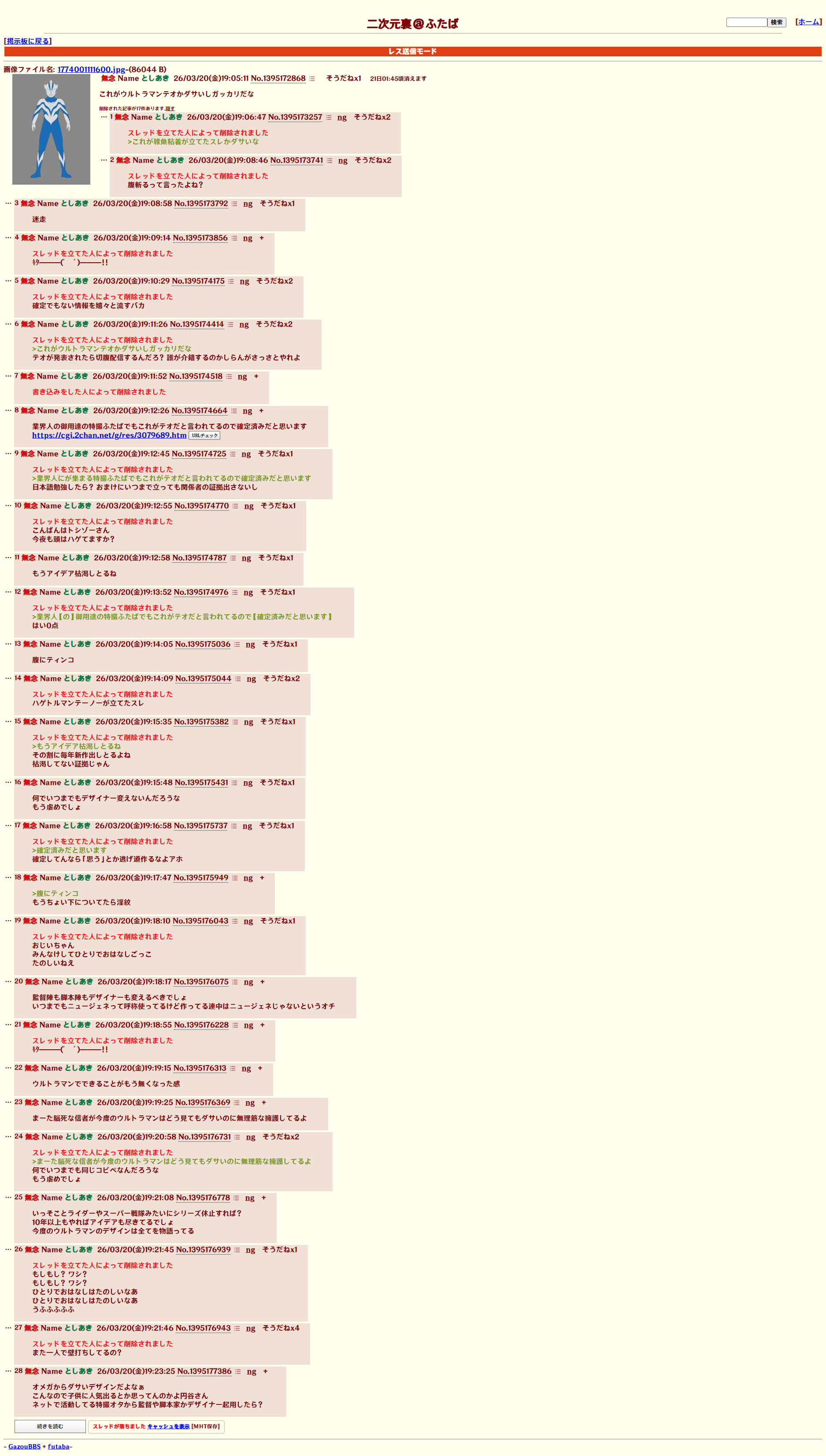 | … | 49無念Nameとしあき26/03/20(金)21:16:40No.1395209153そうだねx6>ウルトラとギャバンはなぁ………不人気爆死 |