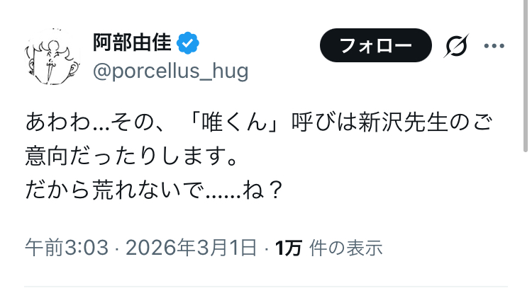 | … | 7無念Nameとしあき26/03/20(金)23:36:44No.1395243984+なんで唯くん呼びなんだよ |