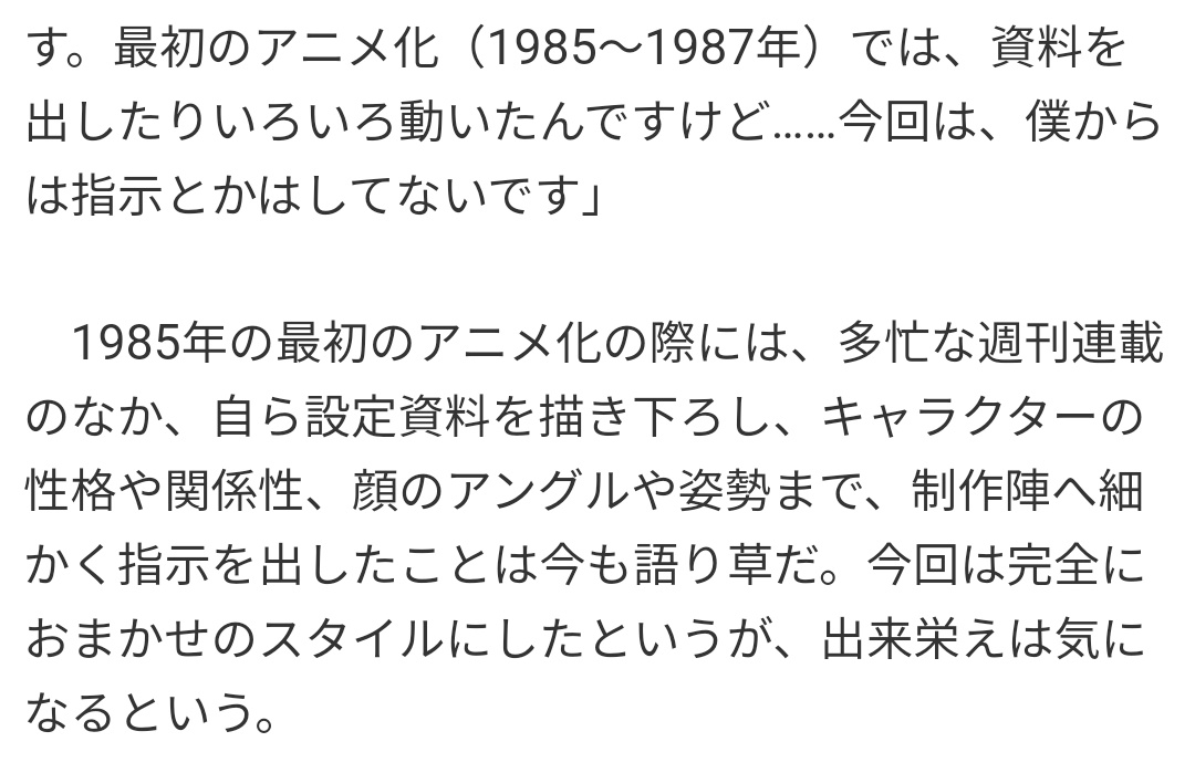 | … | 344無念Nameとしあき26/03/21(土)00:49:21No.1395258035+>当時のアニメスタッフへの要求っぷりは読者目線から見ても注文多いな…って印象だったけど |
