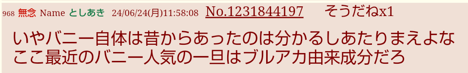 | … | 444無念Nameとしあき26/03/21(土)10:24:04No.1395304833+>最近はマジでブルアカが流行ってるとか覇権みたいなことを言う人間が激減したのは感じるわよ… |