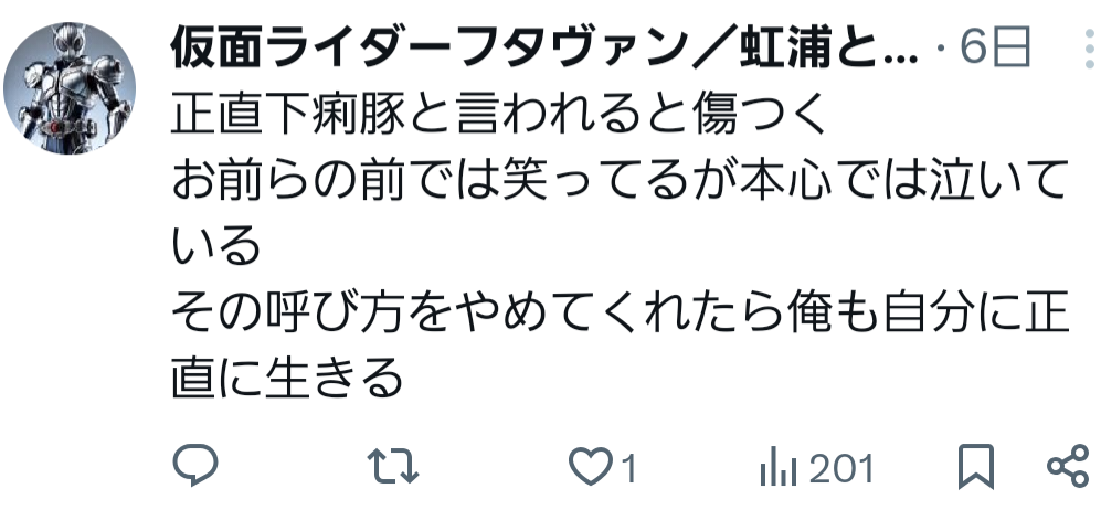 | … | 50無念Nameとしあき26/03/21(土)06:30:09No.1395278505そうだねx4無視されたら自分で自分を叩きさらに無視されたら多順勢順で構って構ってとやるくせにボコられると構うなーって癇癪を起こすの思っていたけど統合失調症なんだな下痢便野郎って |