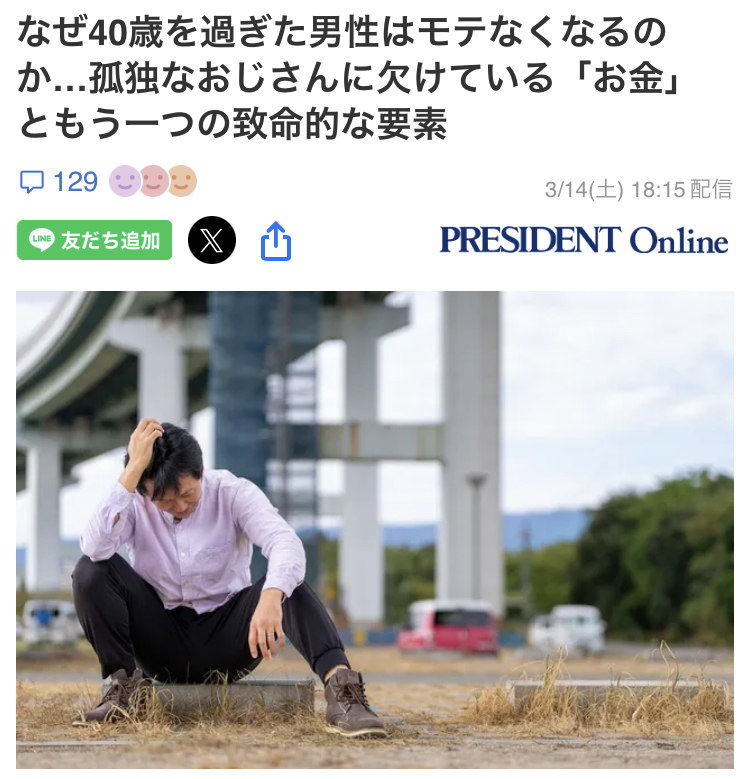 | … | 3無念Nameとしあき26/03/21(土)06:01:07No.1395277381そうだねx28>なぜ40歳を過ぎた男性はモテなくなるのか |