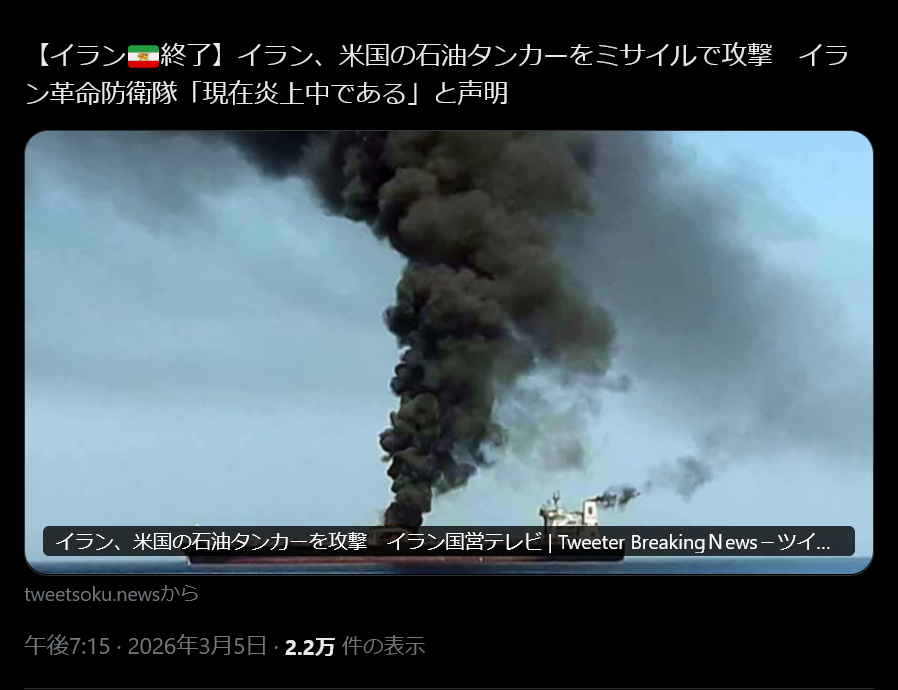 | … | 6無念Nameとしあき26/03/21(土)06:21:29No.1395278178そうだねx8>普段から「中国が侵略してくるぞ!」と言ってるのに現在侵略を次々続けてるアメリカを支援する日本 |