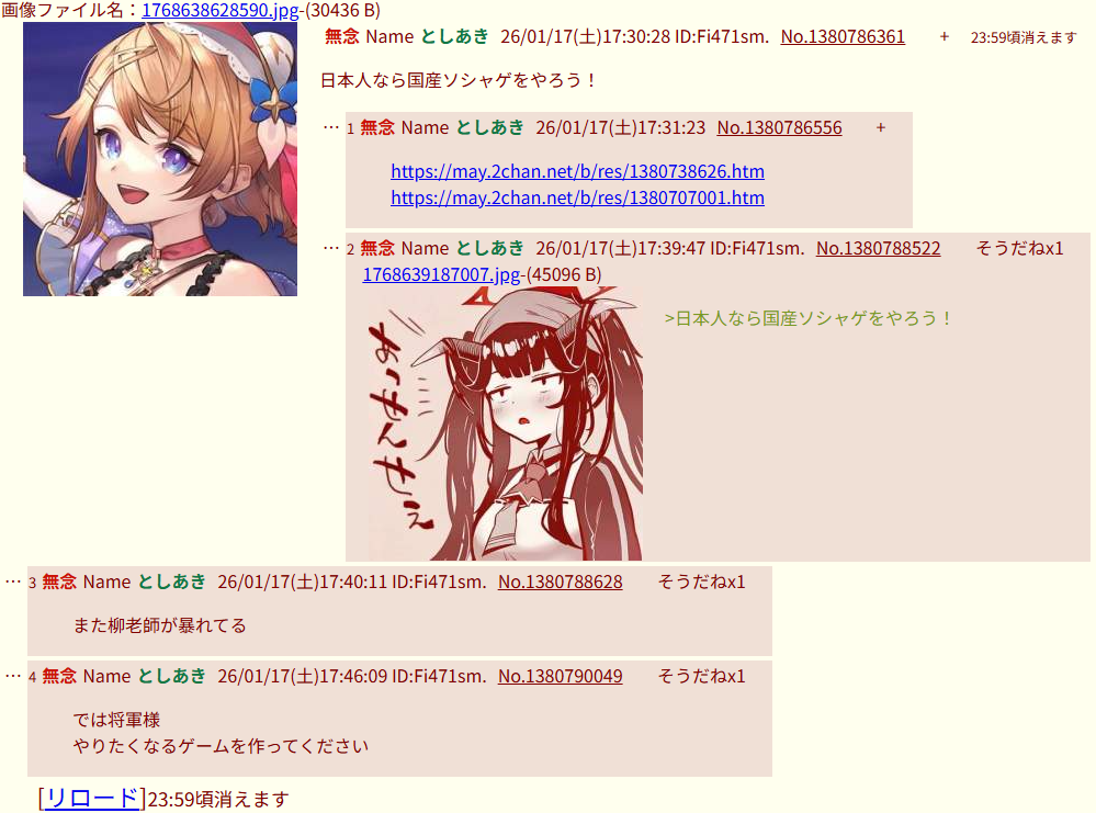 | … | 26無念Nameとしあき26/03/21(土)07:29:20No.1395282191+壁打ち中 |