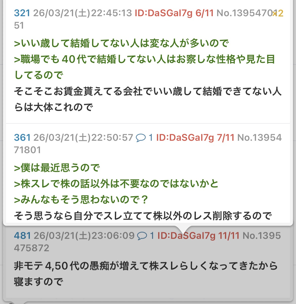 | … | 78無念Nameとしあき26/03/21(土)22:09:25 ID:SoOZrUYYNo.1395460092そうだねx7株スレでくらい穏やかに話しませんかので |