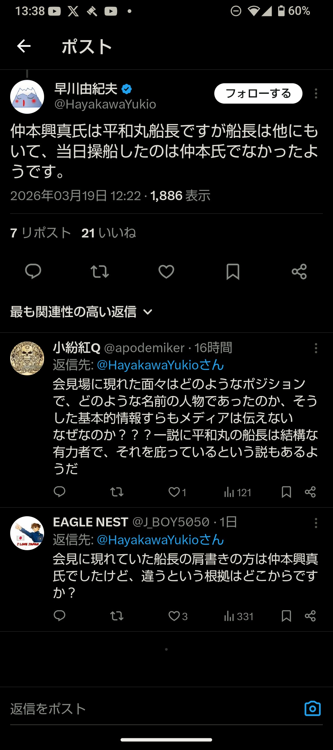 | … | 83無念Nameとしあき26/03/21(土)23:46:08No.1395485436そうだねx3>出航の可否は船長の判断に委ねたって言うけどさ… |