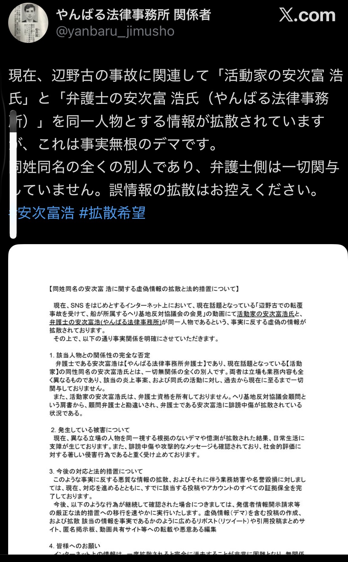 | … | 1無念Nameとしあき26/03/22(日)00:33:55No.1395495438そうだねx21 1774107235599.jpg-(475302 B) 弁護士では無いらしい |