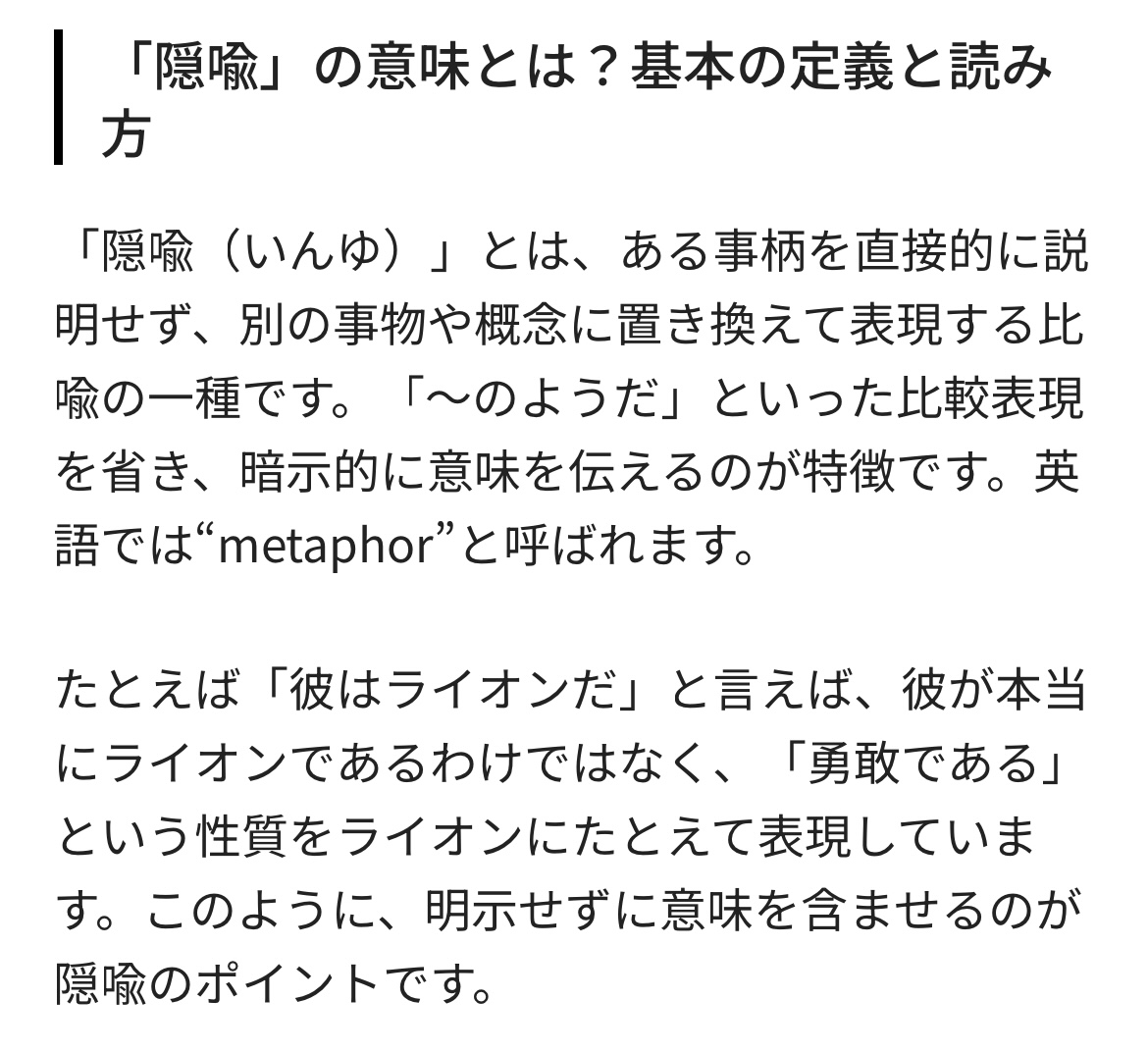| … | 294無念Nameとしあき26/03/22(日)05:16:34No.1395520168+>明喩≠隠喩=暗喩 |