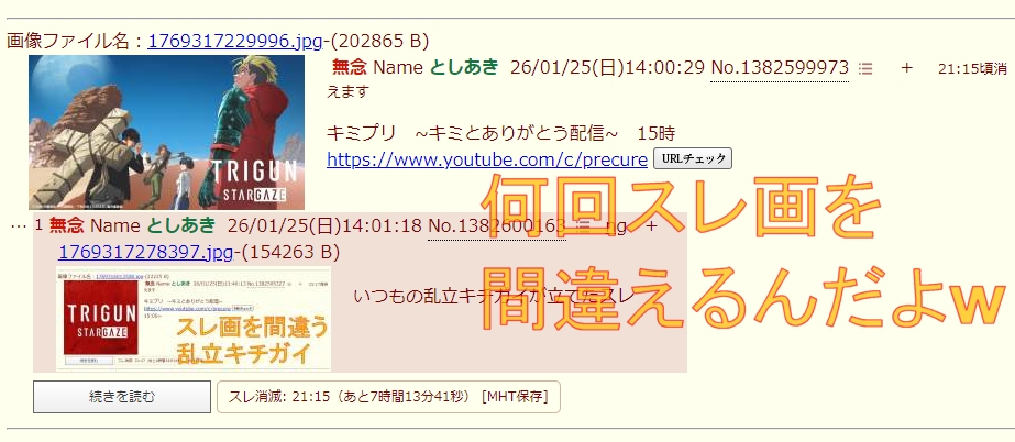 | … | 464無念Nameとしあき26/03/22(日)09:27:37 ID:JUP/UpncNo.1395542677+自覚あったんかい! |