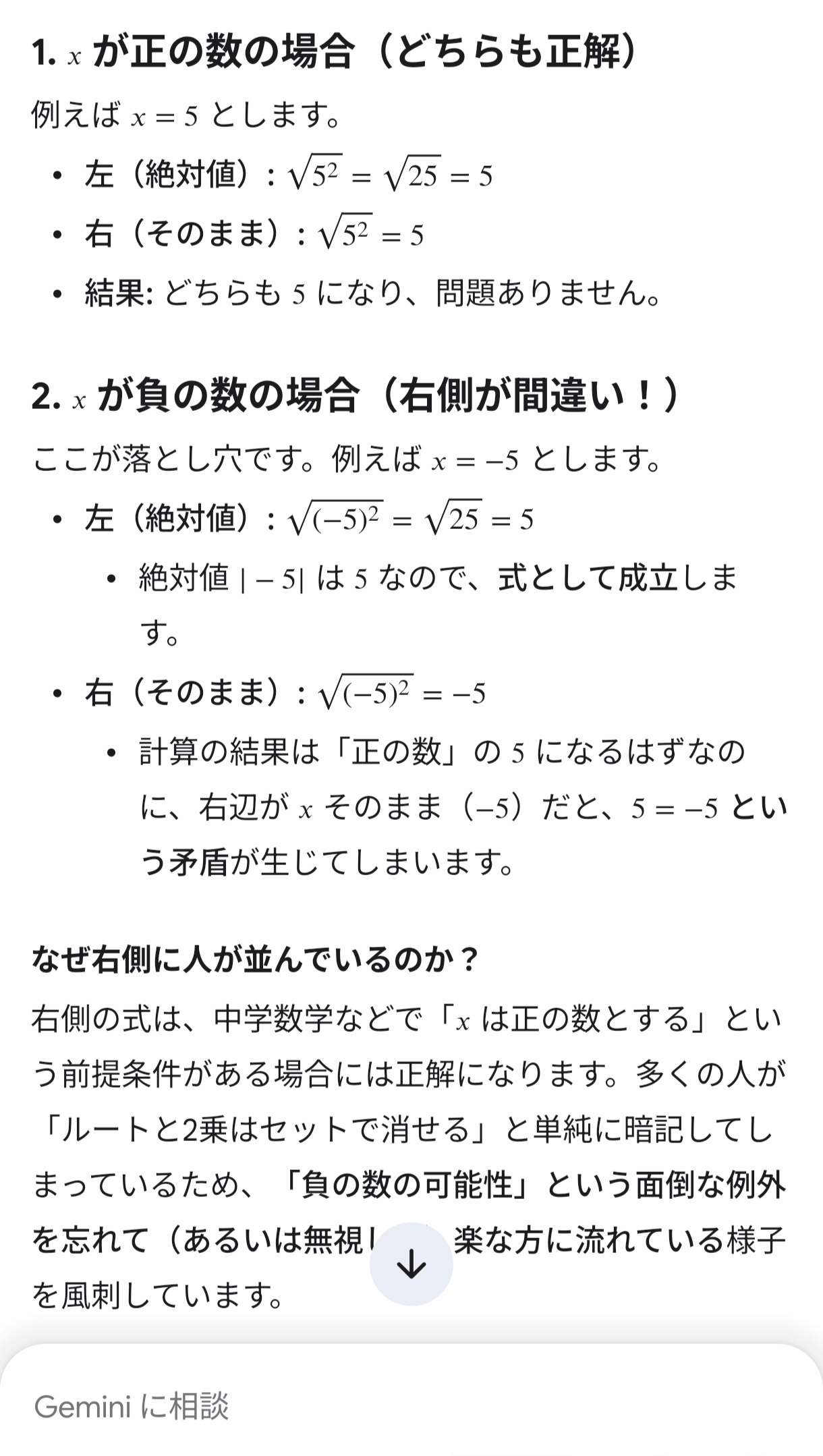 | … | 20無念Nameとしあき26/03/22(日)11:10:15No.1395562134+√25って二乗したら25になるものって意味だから、5と−5の両方が解になる |