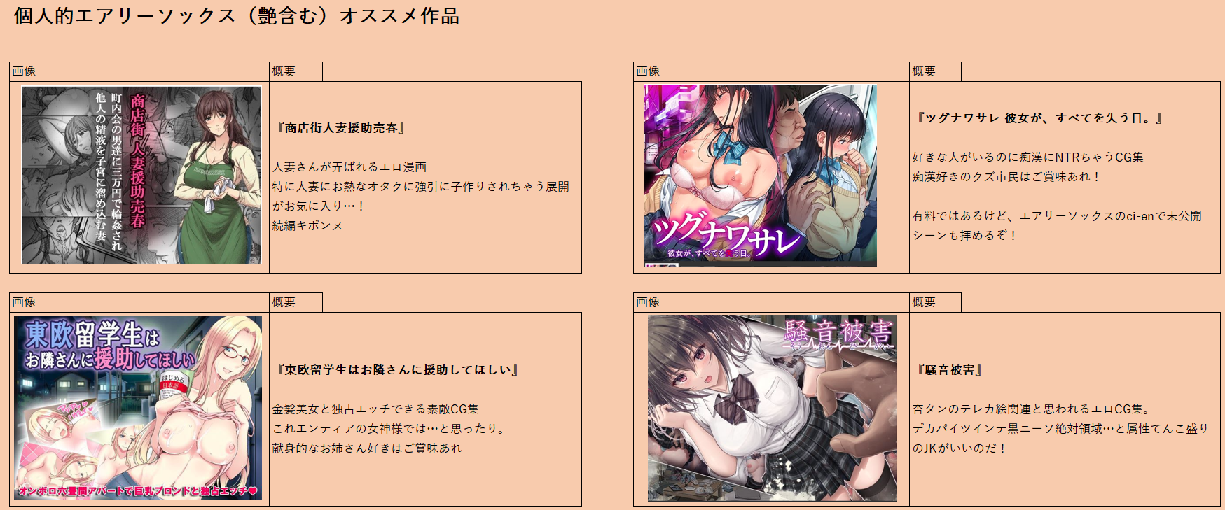 | … | 5無念Nameとしあき26/03/22(日)20:54:34No.1395697407+ 1774180474243.png-(983906 B) ちょっと古いが、エアリーソックス系列のおススメも貼っておく |