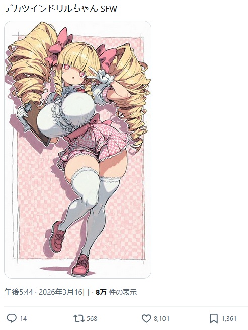 | … | 991無念Nameとしあき26/03/23(月)02:07:42No.1395762767+1000なら下着祭り |