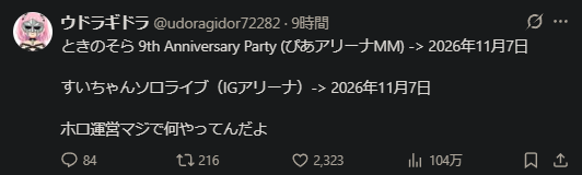 | … | 77無念Nameとしあき26/03/23(月)09:06:11No.1395782308+>>ライブ被り罪は相当面白い |