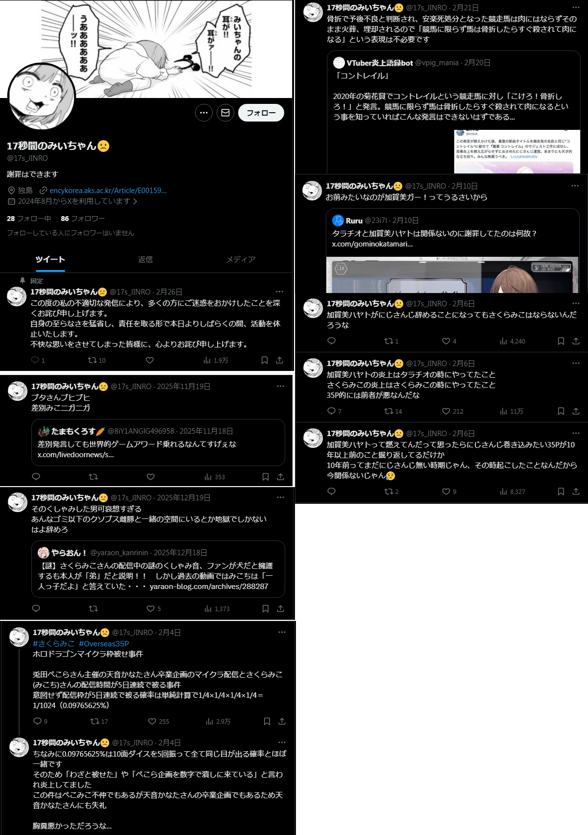 | … | 909無念Nameとしあき26/03/23(月)11:40:36No.1395801249+すいせい一人のために色々フォローしたりすると |