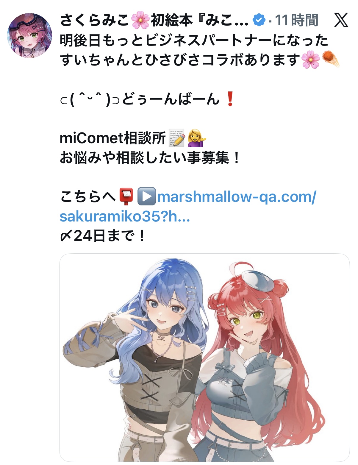 個人事務所設立、星街すいせい上限1000レスに達しました