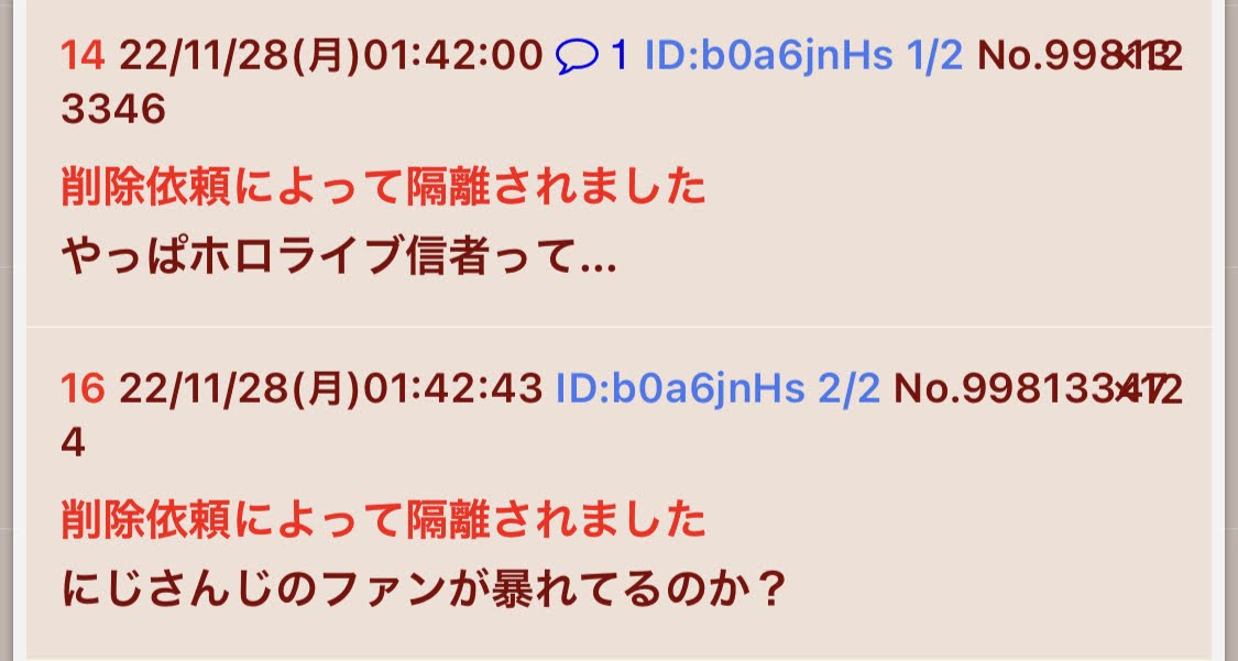 | … | 914無念Nameとしあき26/03/23(月)11:41:18No.1395801333そうだねx9>ホロファンは極端な箱推し思考だから別の事務所の名前が出てきたらどうなるかなってのはある |