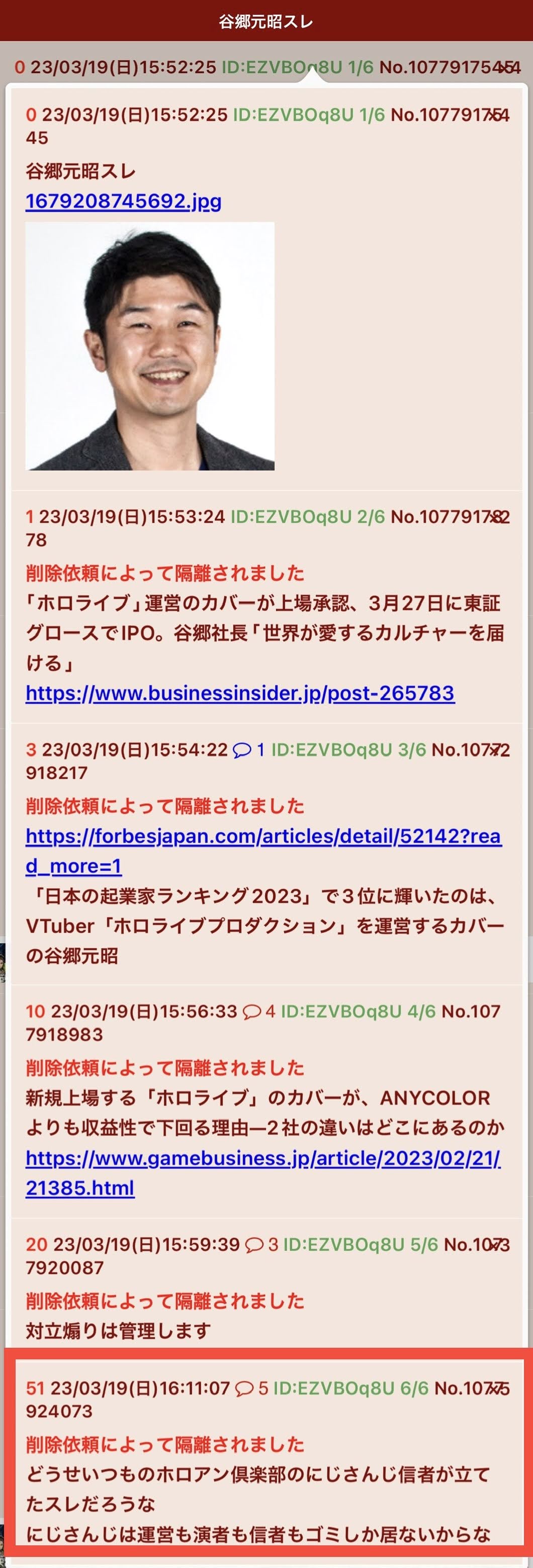 | … | 24無念Nameとしあき26/03/23(月)08:45:48No.1395780206そうだねx34にじさんじリスナーによる粘着スレ |