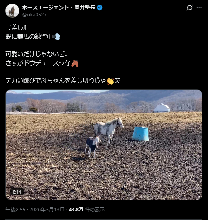 | … | 110無念Nameとしあき26/03/23(月)13:54:13No.1395823855そうだねx1プイ産駒は記録じゃなくて記憶で牝馬の方が印象強いのぽんよねえたぬき的には |