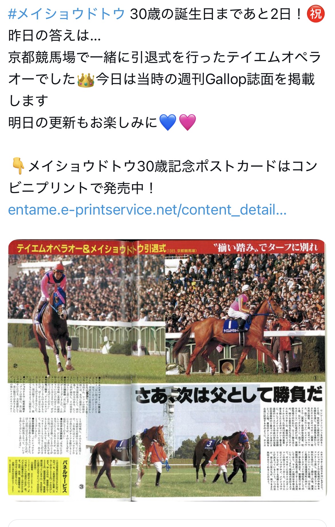 | … | 29無念Nameとしあき26/03/23(月)10:33:02No.1395792431そうだねx13 1774229582248.jpg-(1005156 B) #メイショウドトウ 30歳の誕生日まであと2日!㊗️ |