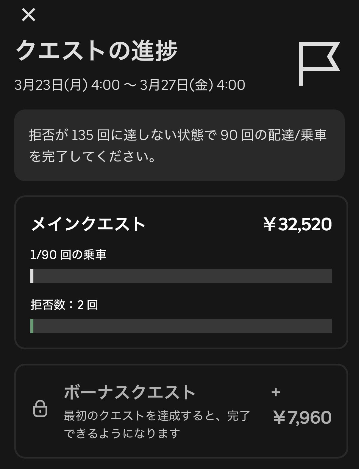 | … | 84無念Nameとしあき26/03/23(月)13:19:39No.1395818762+クエ達成間近の配達員には注文入らなく設定されてそう |