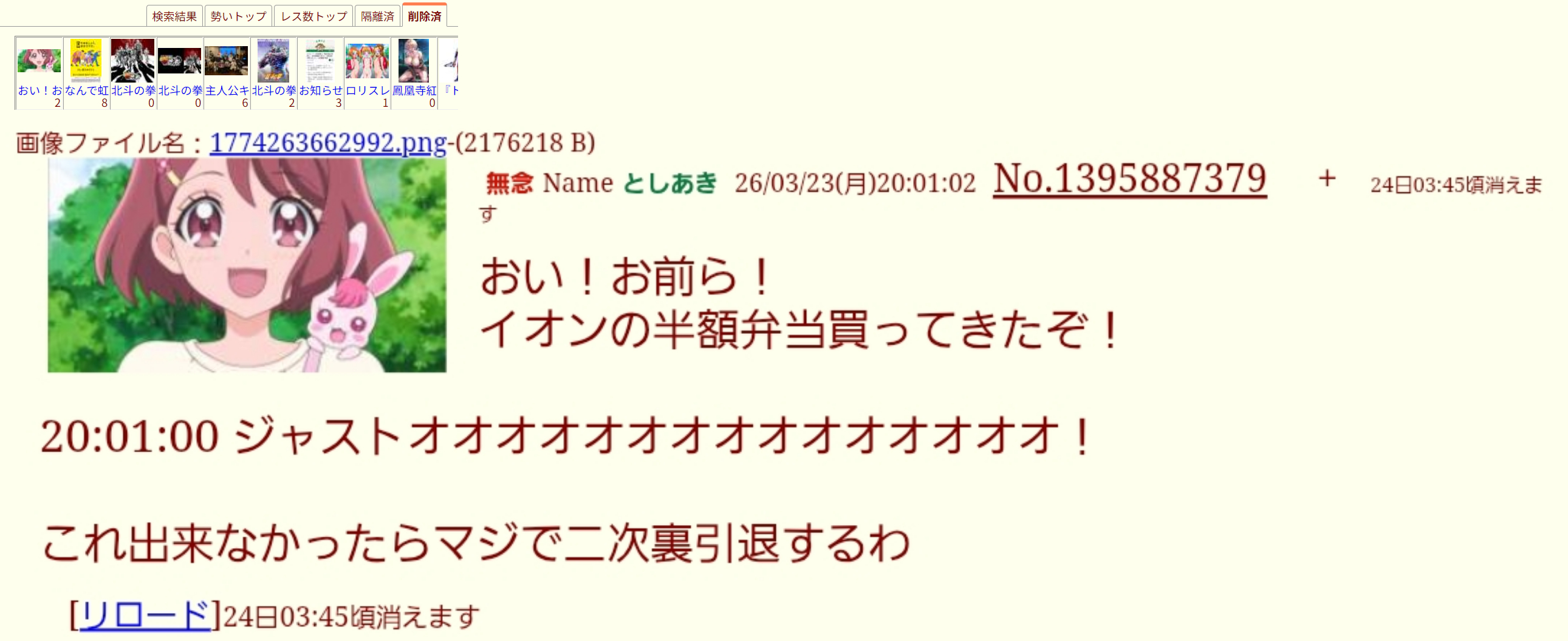 | … | 33無念Nameとしあき26/03/23(月)20:49:38No.1395901519+https://may.2chan.net/b/res/1395895711.htm |