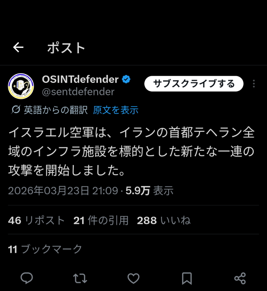 | … | 11無念Nameとしあき26/03/23(月)20:35:27No.1395897396そうだねx8大丈夫?イスラエル変な事してこない? |