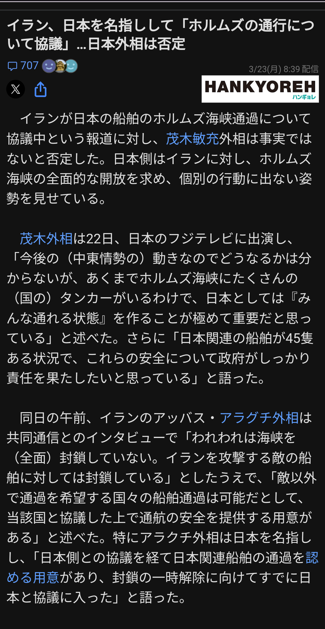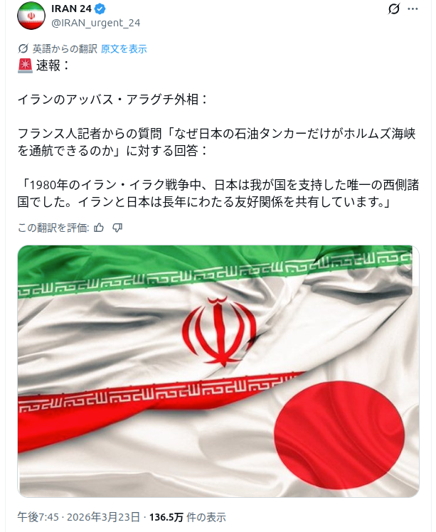 | … | 26無念Nameとしあき26/03/23(月)20:39:05No.1395898464+今のうちに日本のタンカー石油満載して逃げてこい |