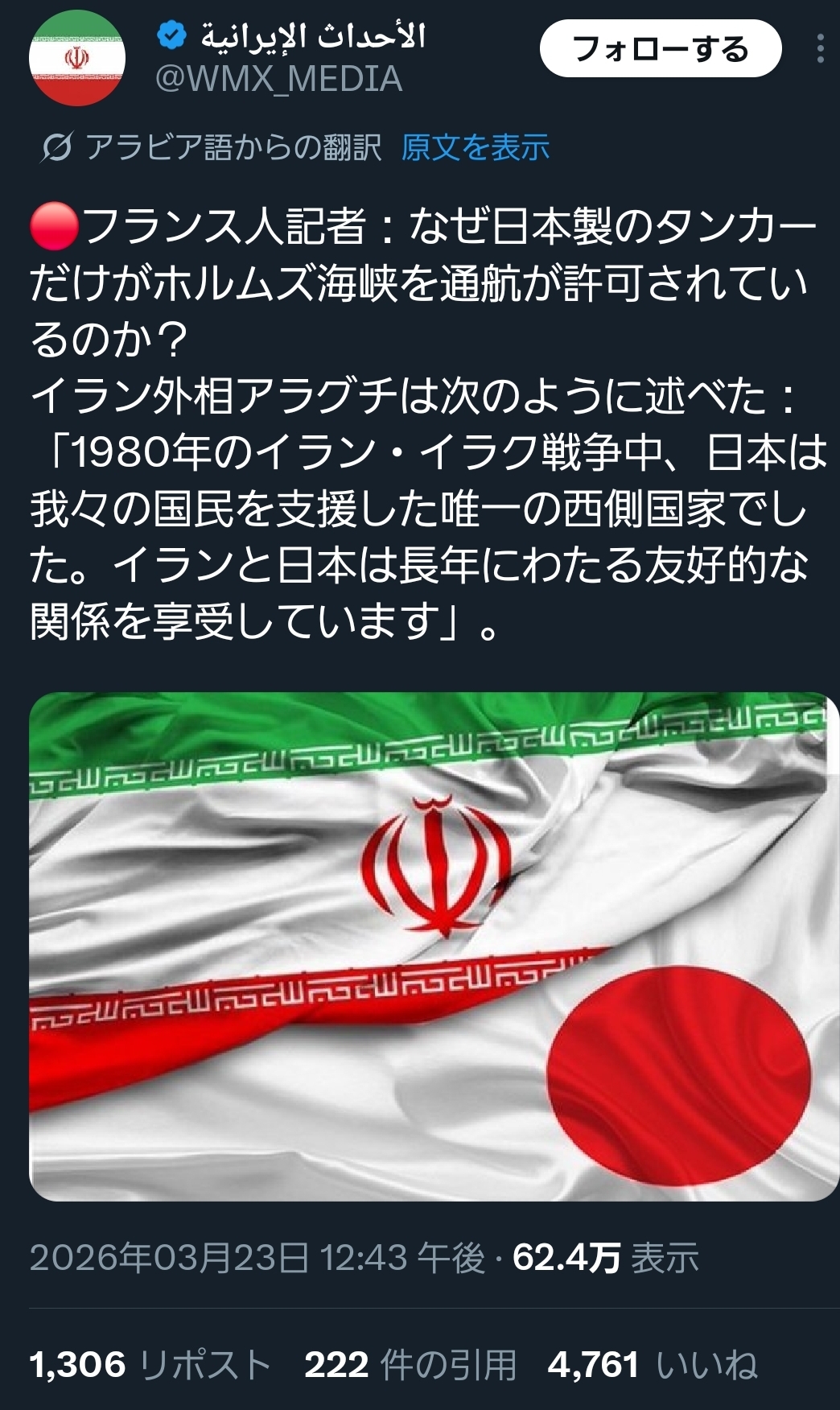 | … | 52無念Nameとしあき26/03/23(月)20:42:28No.1395899449そうだねx9>だからイラン側から海峡を解放するから攻撃を待ってくれとオファーがあったんじゃね? |