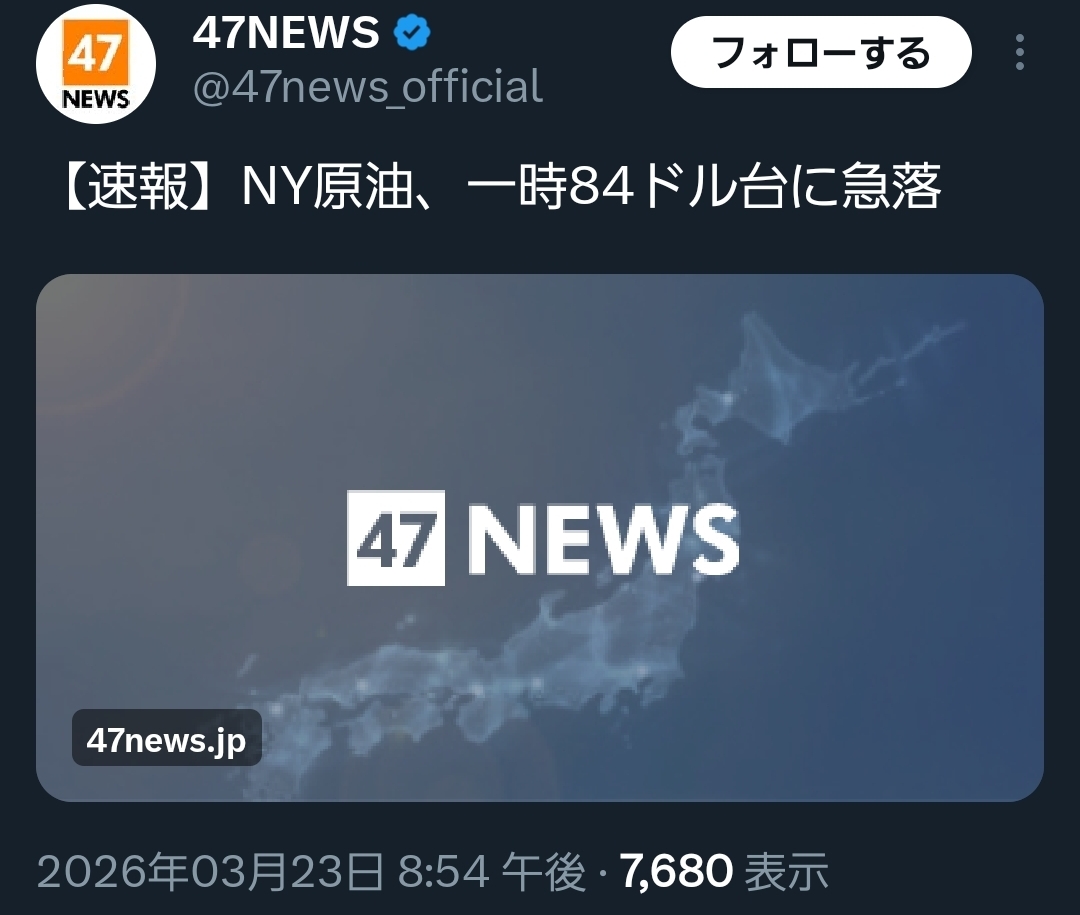 | … | 68無念Nameとしあき26/03/23(月)20:44:36No.1395900085+原油高とか石油製品値上がりとか何だったんだ? |