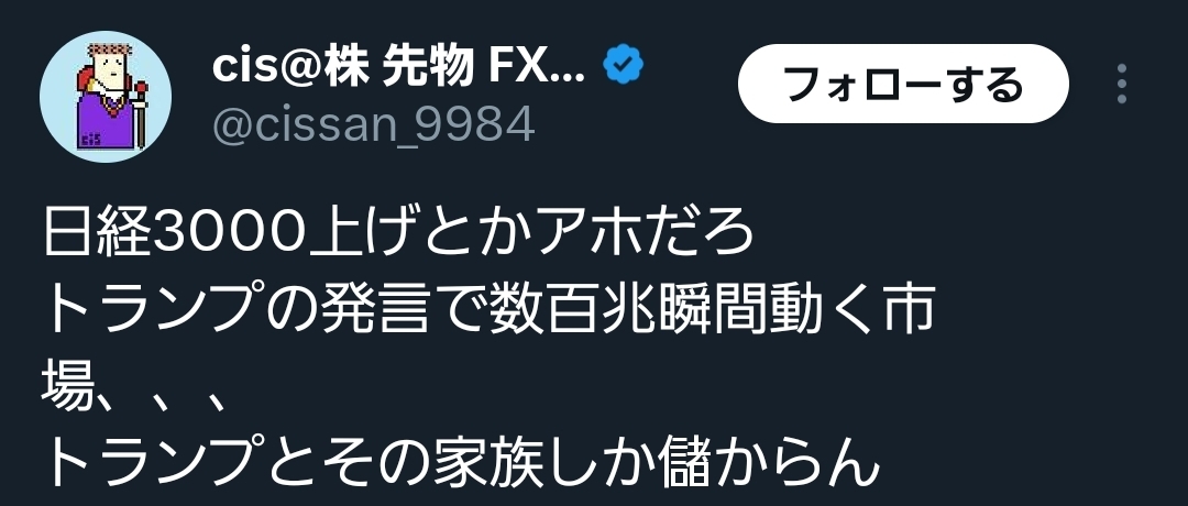 | … | 994無念Nameとしあき26/03/23(月)22:17:43No.1395926144+>>>トランプはインサイダーでもやってるの? |