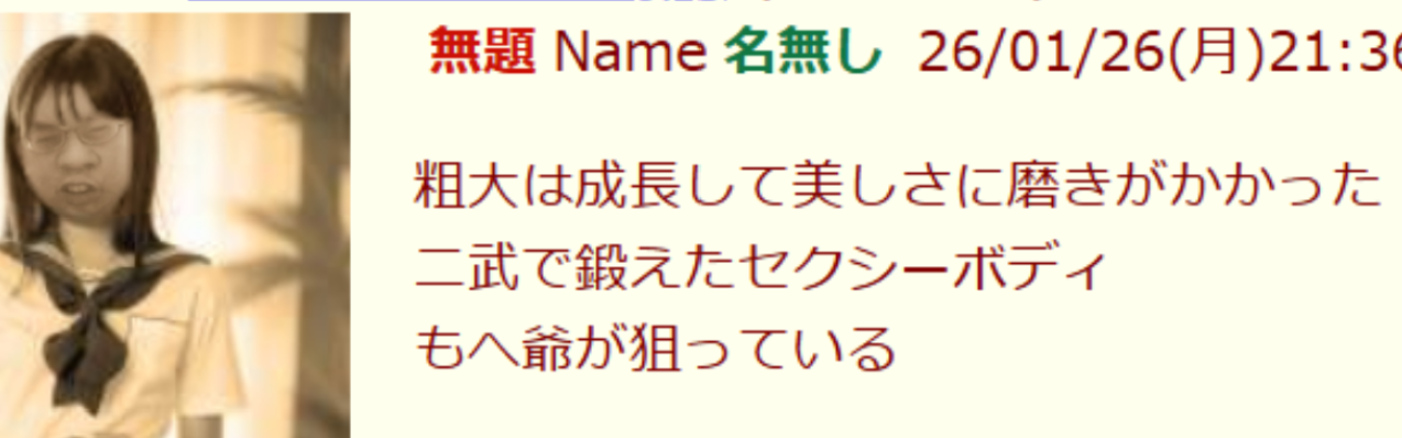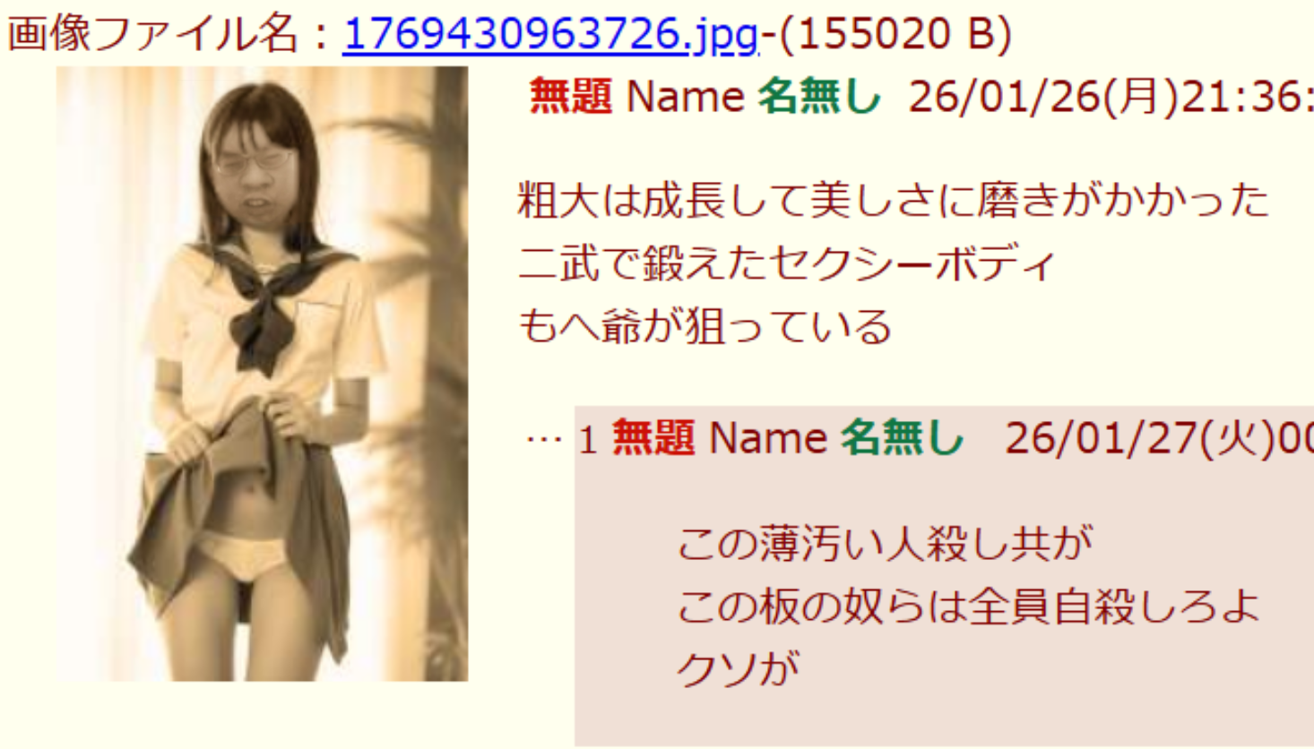 | … | 6無念Nameとしあき26/03/23(月)20:44:11No.1395899964そうだねx2>おじさん豚って金沢の知的障害下痢豚河村の事? |
