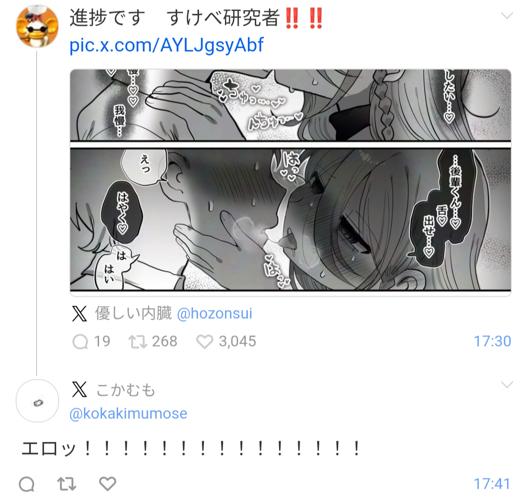 | … | 157無念Nameとしあき26/03/24(火)00:51:38No.1395957899+ぎゃおちゃんキスでコミュニケーションする流れでもう既にえっち経験済みだったら苦しいけど嬉しい |