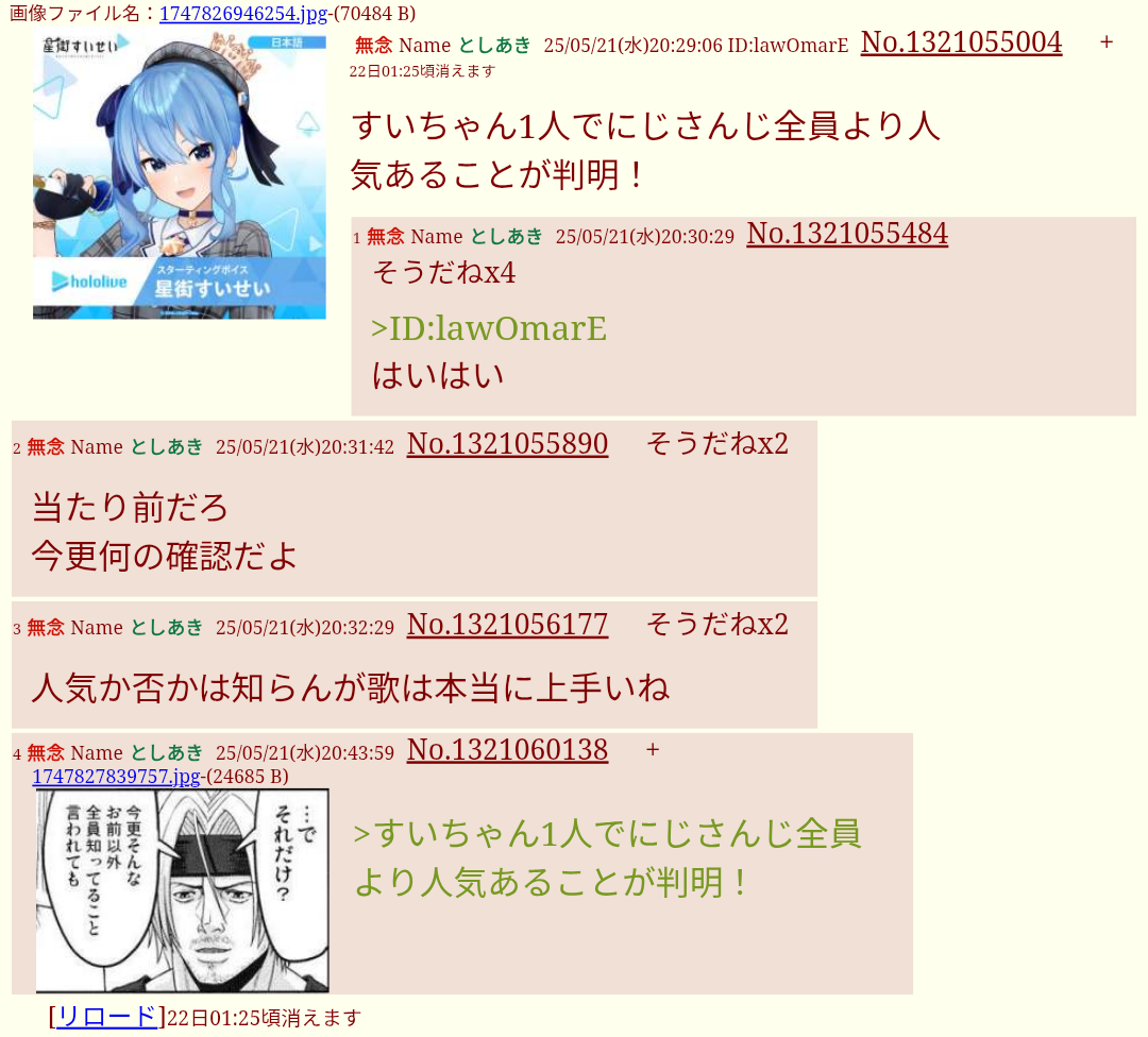 | … | 36無念Nameとしあき26/03/24(火)00:00:50No.1395949675そうだねx5>にじさんじとか好きそう |